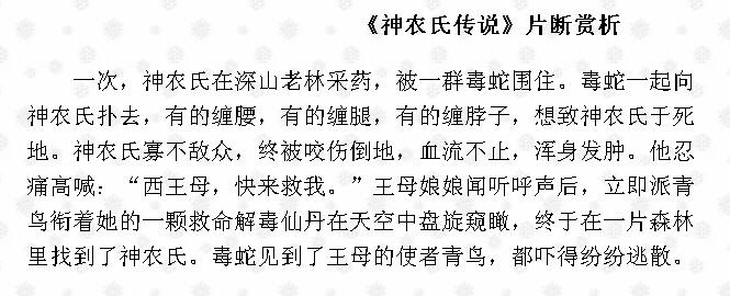 1、导语:这种大胆的想象,生动语言的运用在许多的神话故事里都可以找到,王老师也摘录了一些,请同学用上今天学习的方法一起去品味其中的精彩之处。