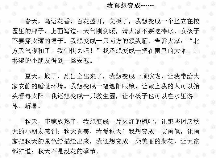 1、想象一下,你会变成什么?会发生什么事情?把事情的起因、经过和结果说清楚。