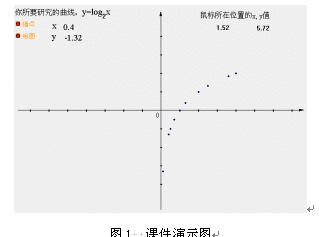 (1) 能够进行描点作图,即给出一组自变量的值,课件能自动计算出函数值,然后将这一组坐标对应的点画出来。当学生取了定义域之外的自变量的值时,课件能够给予出错信息。如图1所示。