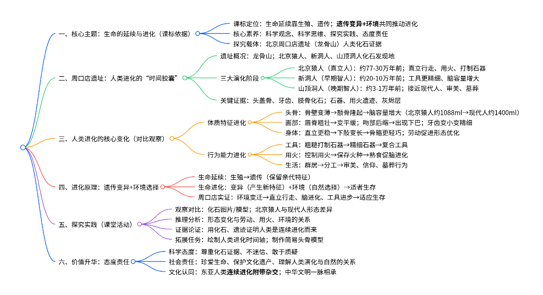 · 能按时间顺序梳理人类进化的大致阶段,形成时序与逻辑思维。