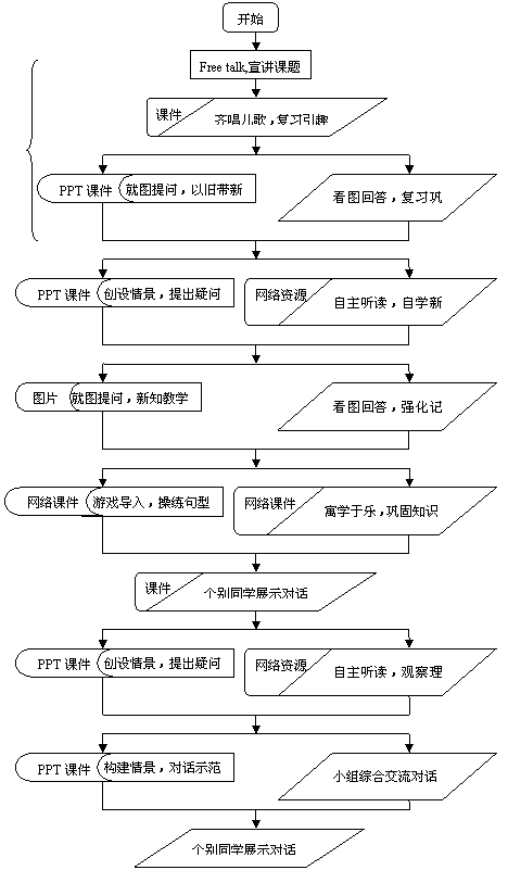 本节课充分利用了教师自制的课件,及网站学习资源,综合运用启发引导、自主学习、协作学习等策略在唱歌、合作表演的形式中引导学生自主、协作学习,不仅进一步激发了学生学习英语的兴趣,增强学习的自信心;而且在情景交流的活动中,学生的语言发散性思维及迁移运用英语的能力也得到锻炼,从而也提高了语言交际的能力。