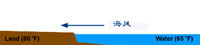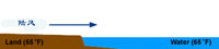 地吹向海上的风,称为陆风(右上图)。气象上常把两者合称为海陆风。 |