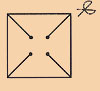 2.用剪刀按折痕(也就是两条对角线)剪开,但是,千万不要全剪开,而是剪到图中圆点所示的位置。