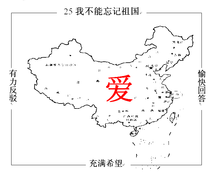 师:今天,我们的祖国雄立于世界民族之林,让我们自豪地说:我不能忘记祖国,我对祖国的未来充满了希望!